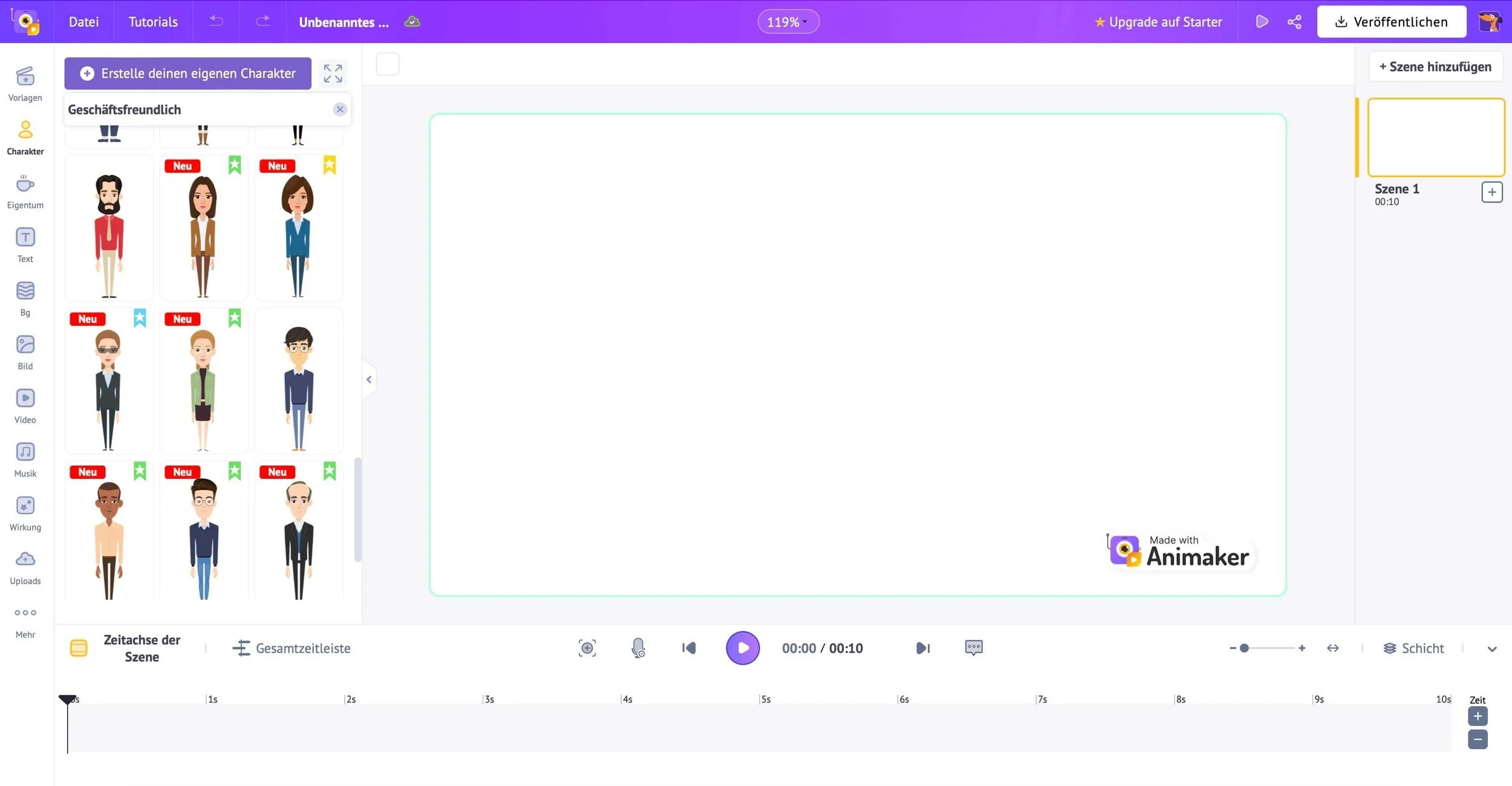 Dafür klickst du einfach auf “deinen eigenen Charakter erstellen” und kannst sofort loslegen. Deine designte Figur wird gespeichert, sodass du sie in allen deinen Videos einsetzen kannst.