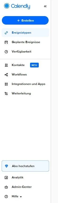Bei Calendly hast du die Möglichkeit unter “Ereignistypen” deine unterschiedlichen Terminarten mit spezifischer Dauer und Verfügbarkeit zu erstellen.