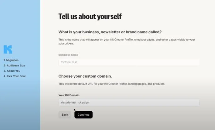 Das heißt, du solltest dir schon überlegen, wie du deine Kit-Domain benennst und nicht einfach irgendwas schreiben. Wir würden dir z.B. deinen Business-Namen empfehlen.
