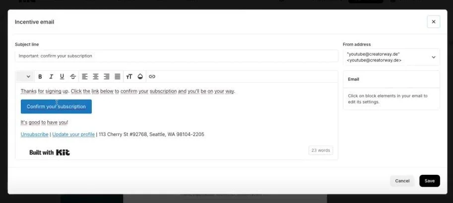 Magst du lieber Videos? Dann schau dir hier an, wie du Emails mit Kit einrichten kannst: