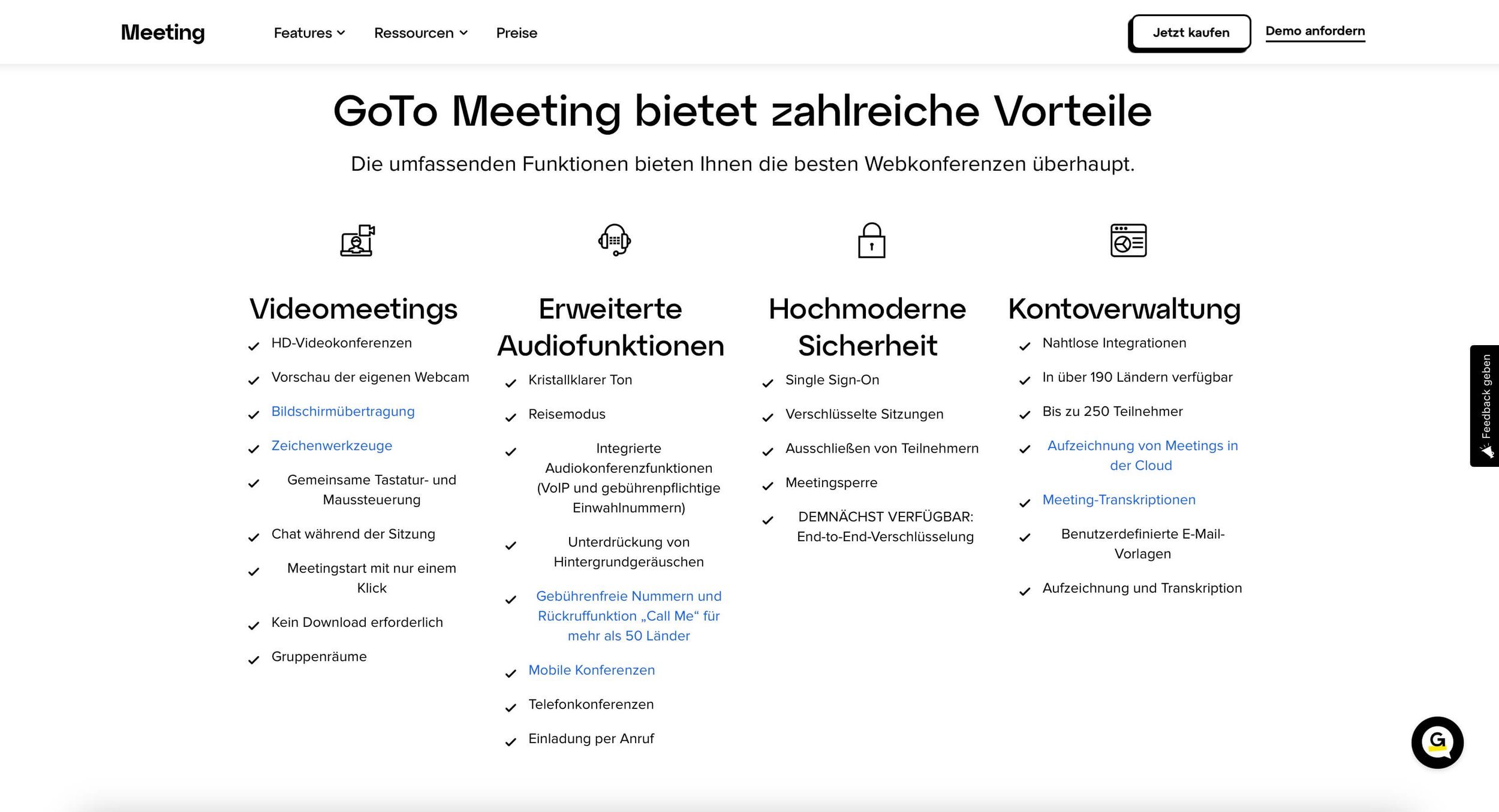 Wenn du dir detailliert anschauen möchtest, welche Features in welchem Paket drin sind, kannst du das gerne hier machen: GoTo Meeting - Übersicht Features.