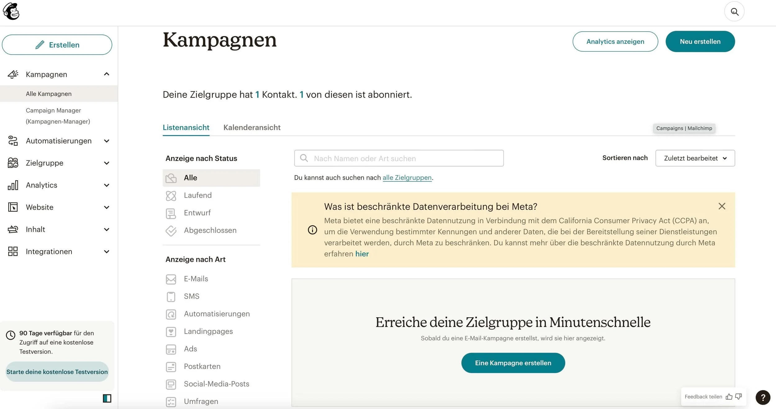 Wenn du magst, kannst du über Mailchimp sogar deine Social-Media-Kampagnen verwalten.