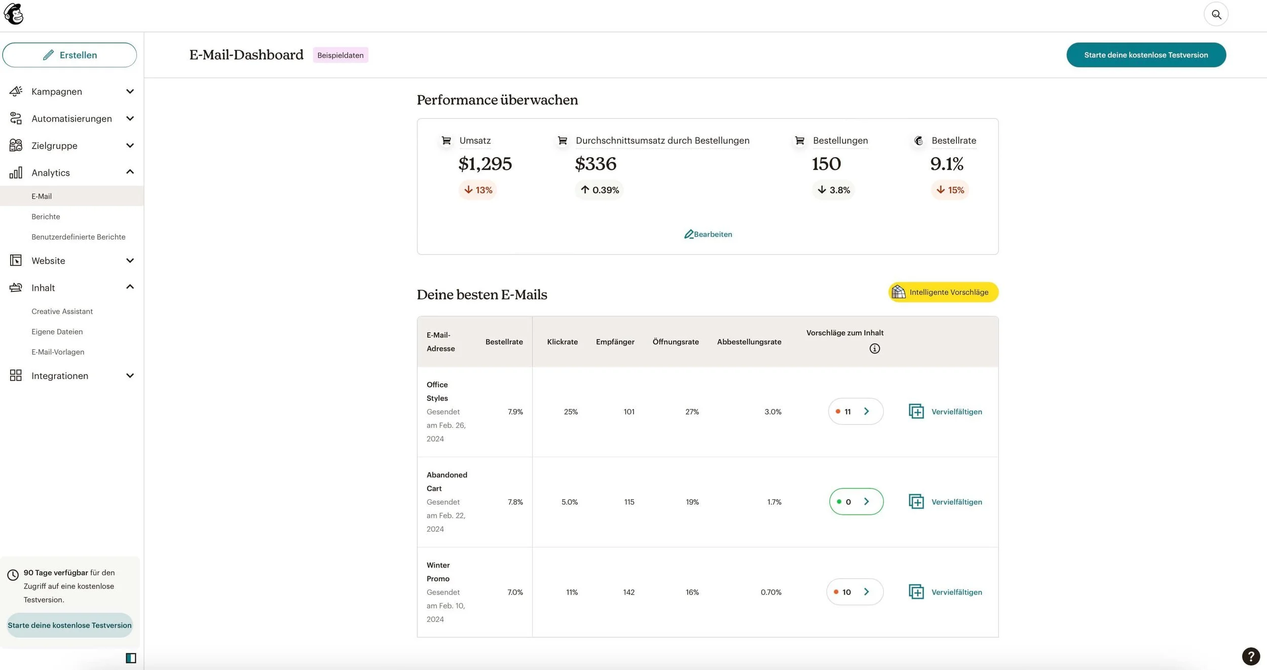 Und natürlich bietet dir Mailchimp auch hier Berichte und Analysen an.