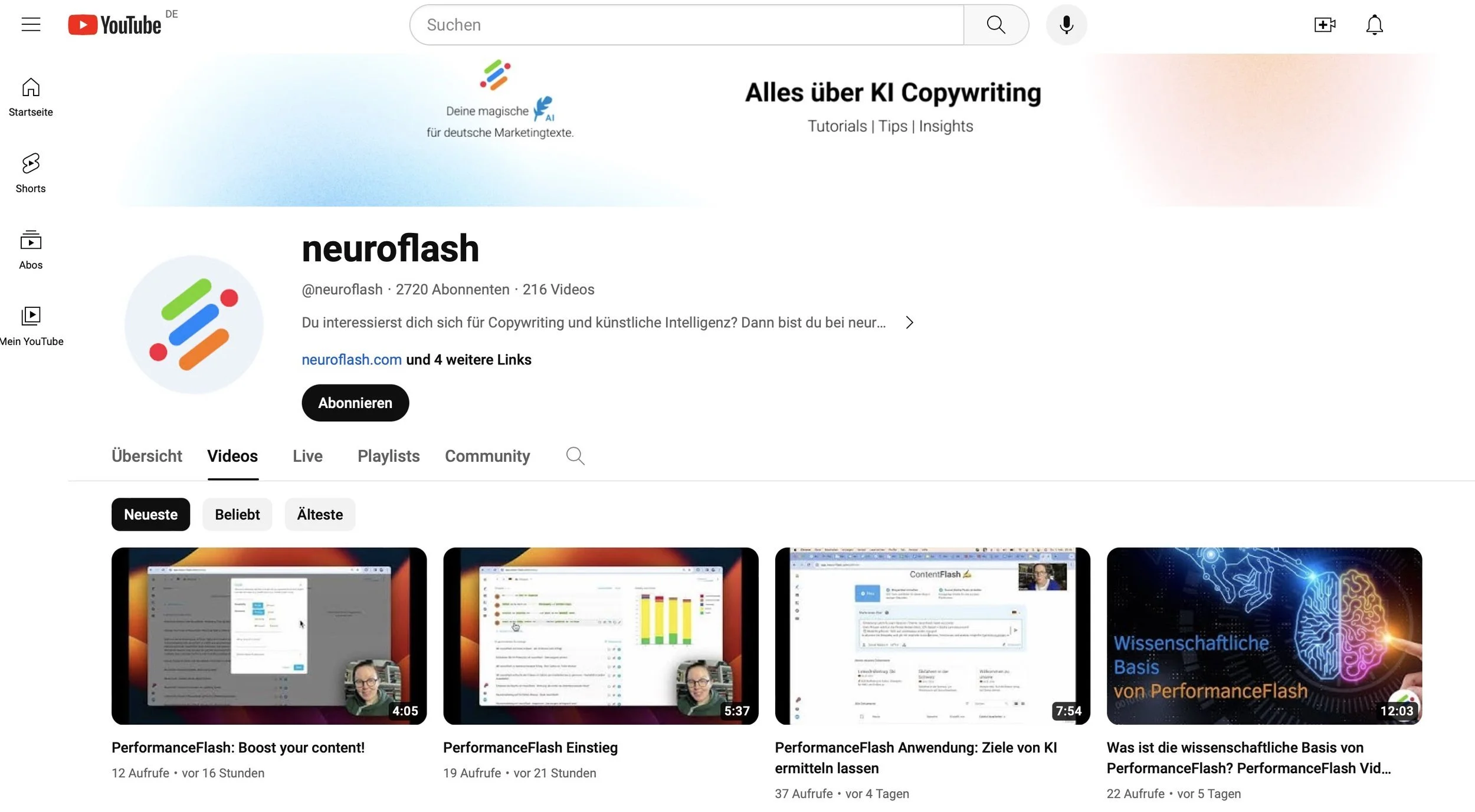 Neuroflash YouTube-Channel