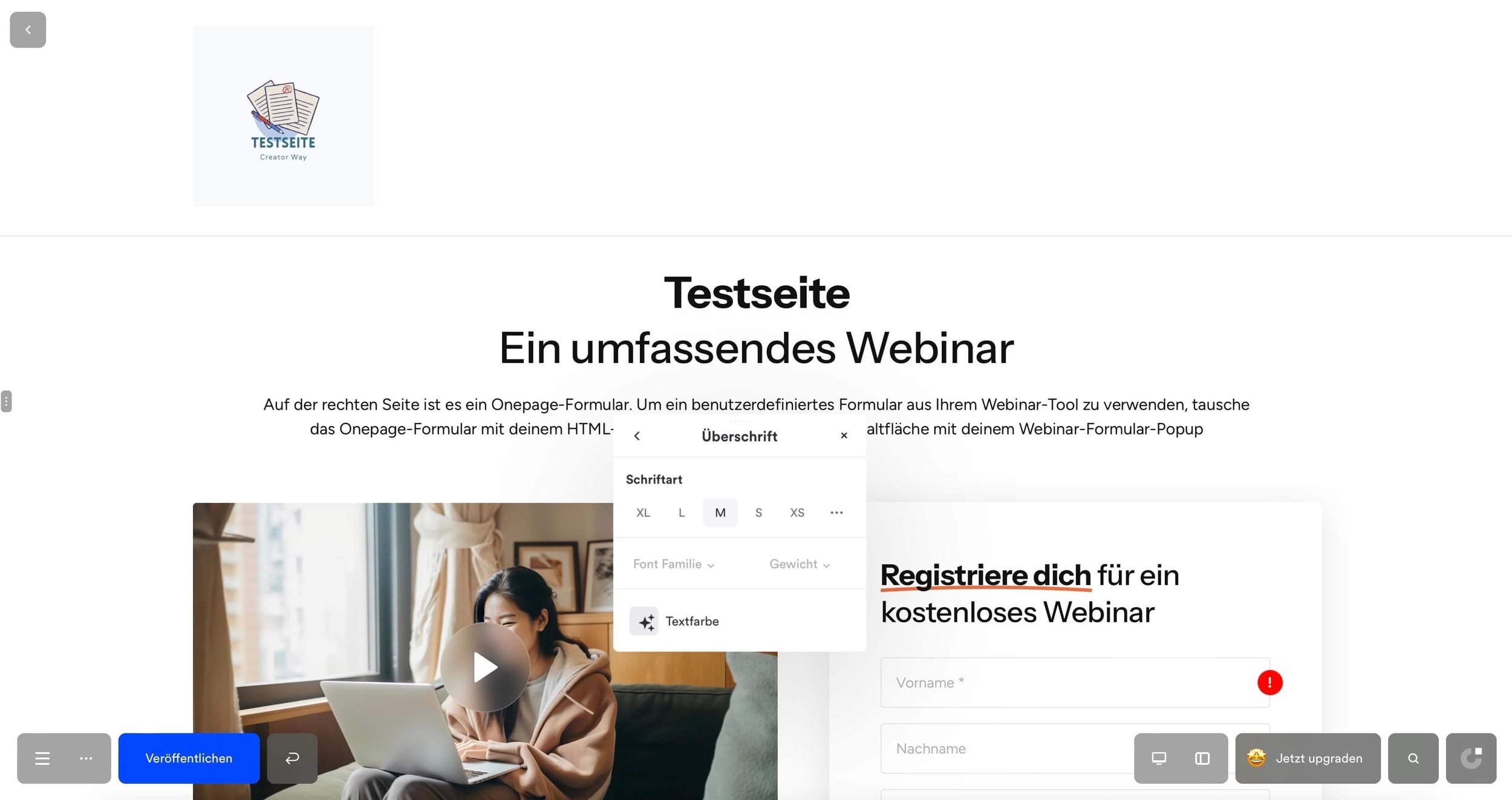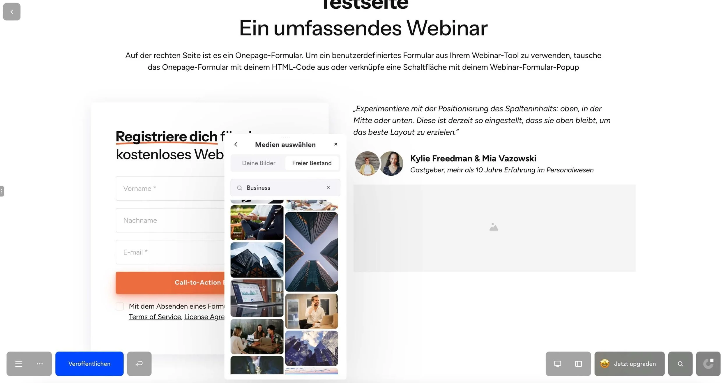 Bilder, Texte und alle anderen Elemente kannst du via Drag-and-Drop einfügen, verschieben und ändern.