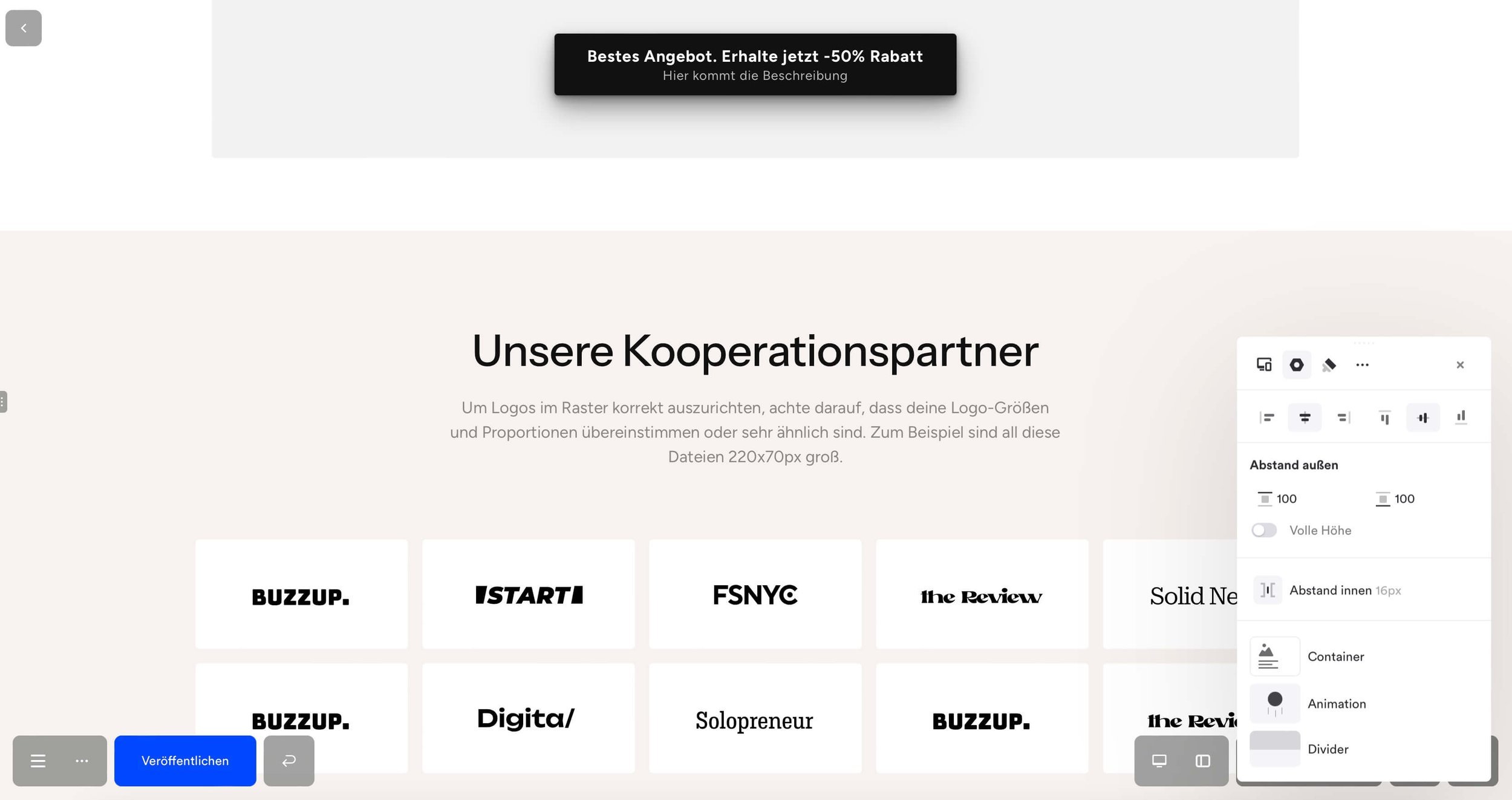 Und wenn du dann alles so designt hast, dass es online gehen kann, klickst du einfach auf “Veröffentlichen”.