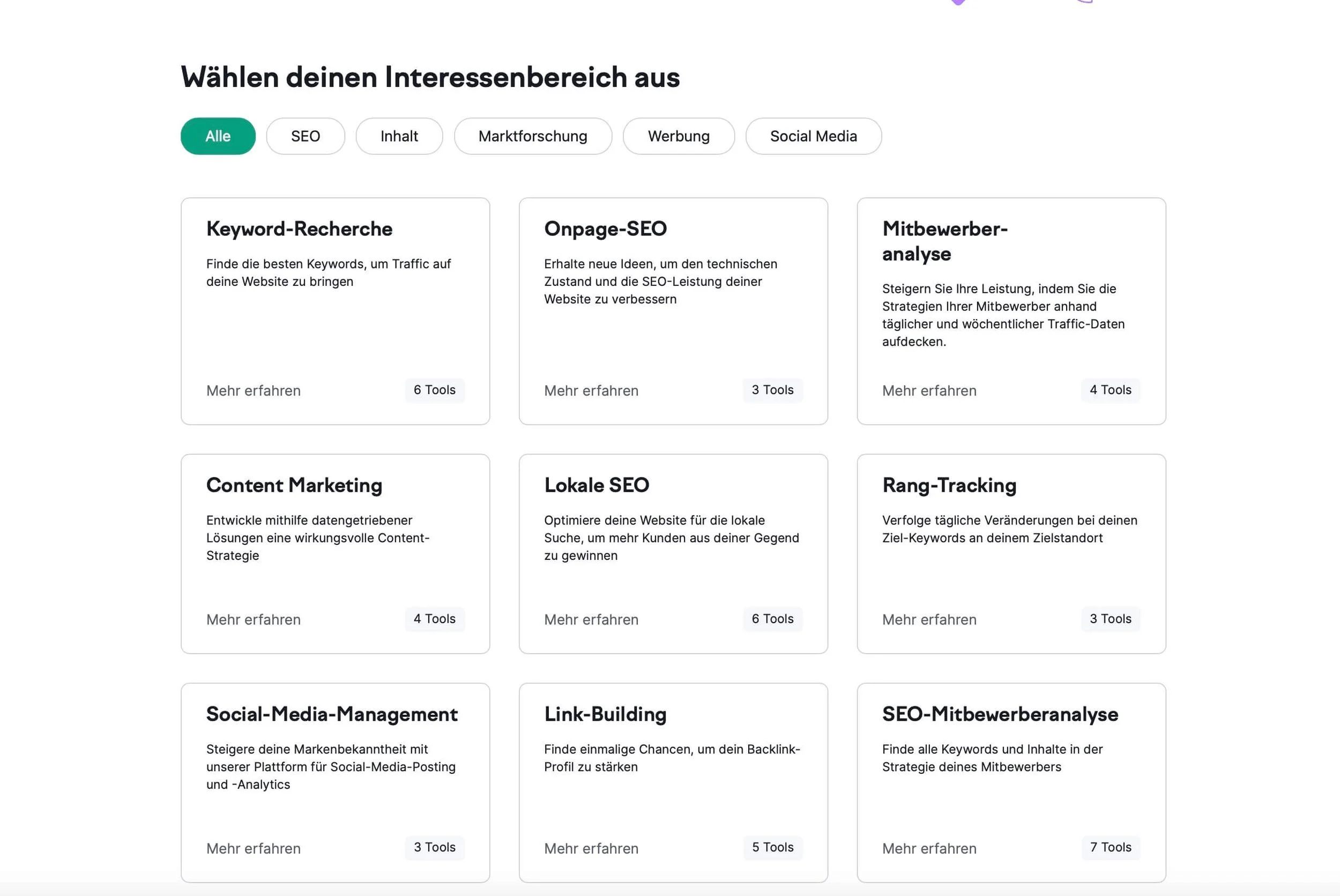 Dir stehen SEO-, PPC- und Recherche-Tools zur Verfügung.