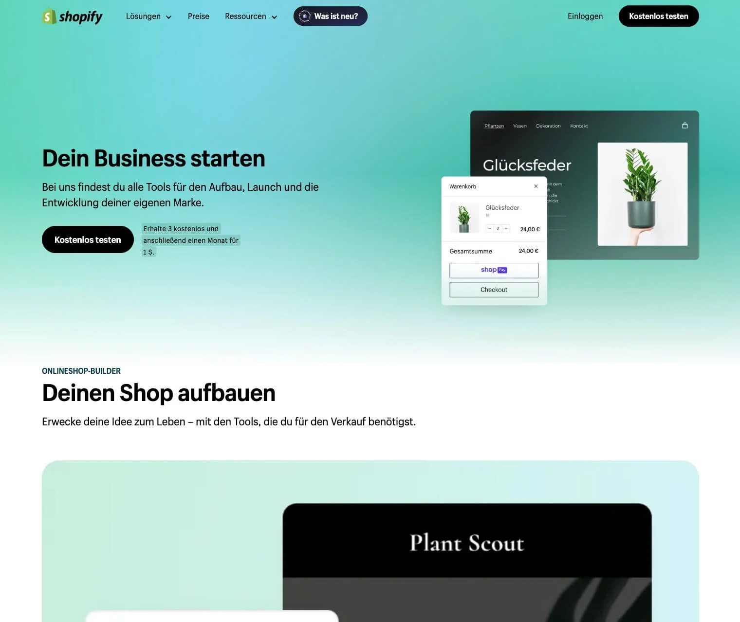 Beim Business-Paket kannst du auch schon mit einem Klick einen Shop einrichten, du hast aber noch ein paar Gebühren.