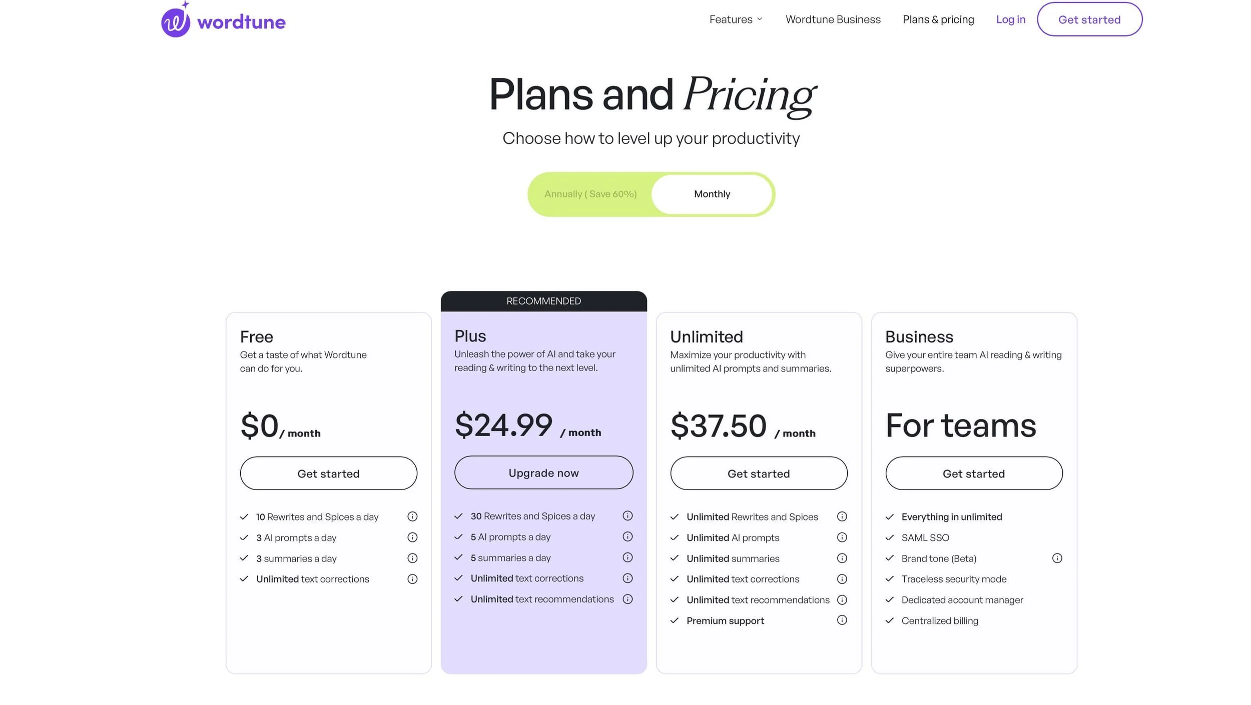 Wordtune bietet vier verschiedene Pakete an: